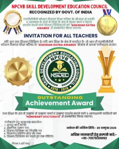 एनपीसीवीबी कौशल विकास शिक्षा परिषद ने घोषित किया ‘शिक्षक रत्न अवार्ड’